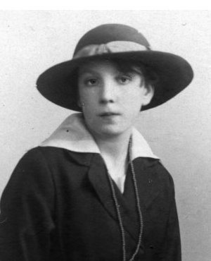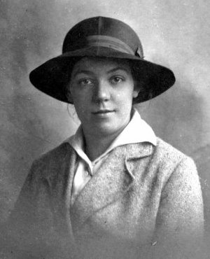 This domed style with medium width brim is the hallmark hat of the Great War. As with all hats the hairstyle underneath had a large influence on the design. A transition had taken place from the wide hat supporting hairstyles of Edwardian years through side-swirl styles to these modest centre or off-centre parting styles of the Great War. In most hairstyles from this time the longer hair at the back will be coiled in a bun or controlled by some other method. There would be enough bulk at the back to use a hat-pin if required. It is plain from photographic evidence that this hat and the falling collar were contemporaries So popular was this style of hat, it was chosen for many women's uniforms. | Usually this hat will be decorated with hatband of wide ribbon | Written on the back Muriel K. Beverton x Oct 1916 |